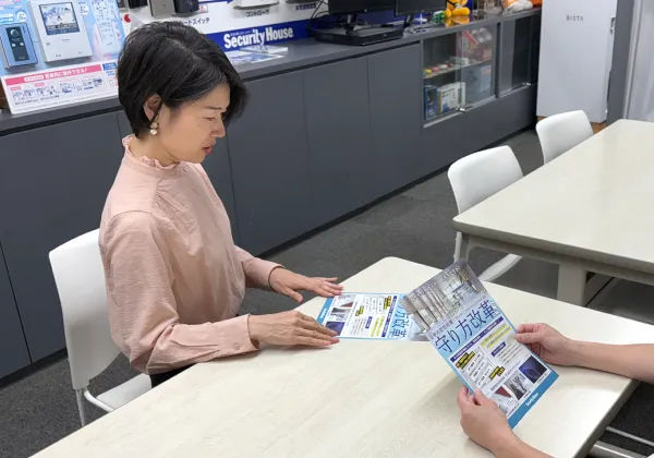 都内を中心として、町会や商店街・マンションへの防犯カメラ設置業務に女性営業員3名の1課と、男性営業員2名の2課で奮闘しています。